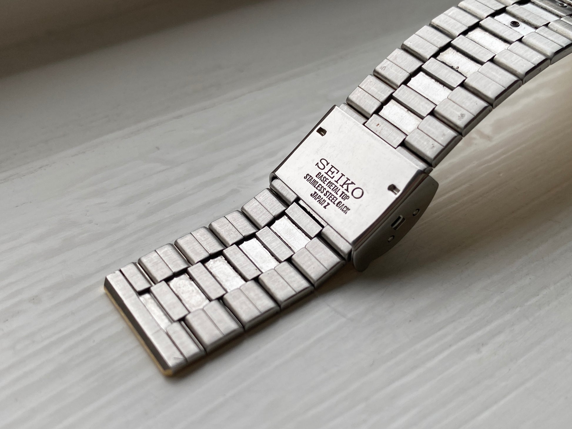 The watch in excellent unpolished condition. The case has very minimal wear, with very minor stains on the side due to aging. On the bracelet, a few dots have lost their gold plating. The same goes for the crown. The crystal is scratch free. There is still an original factory sticker on the caseback.
