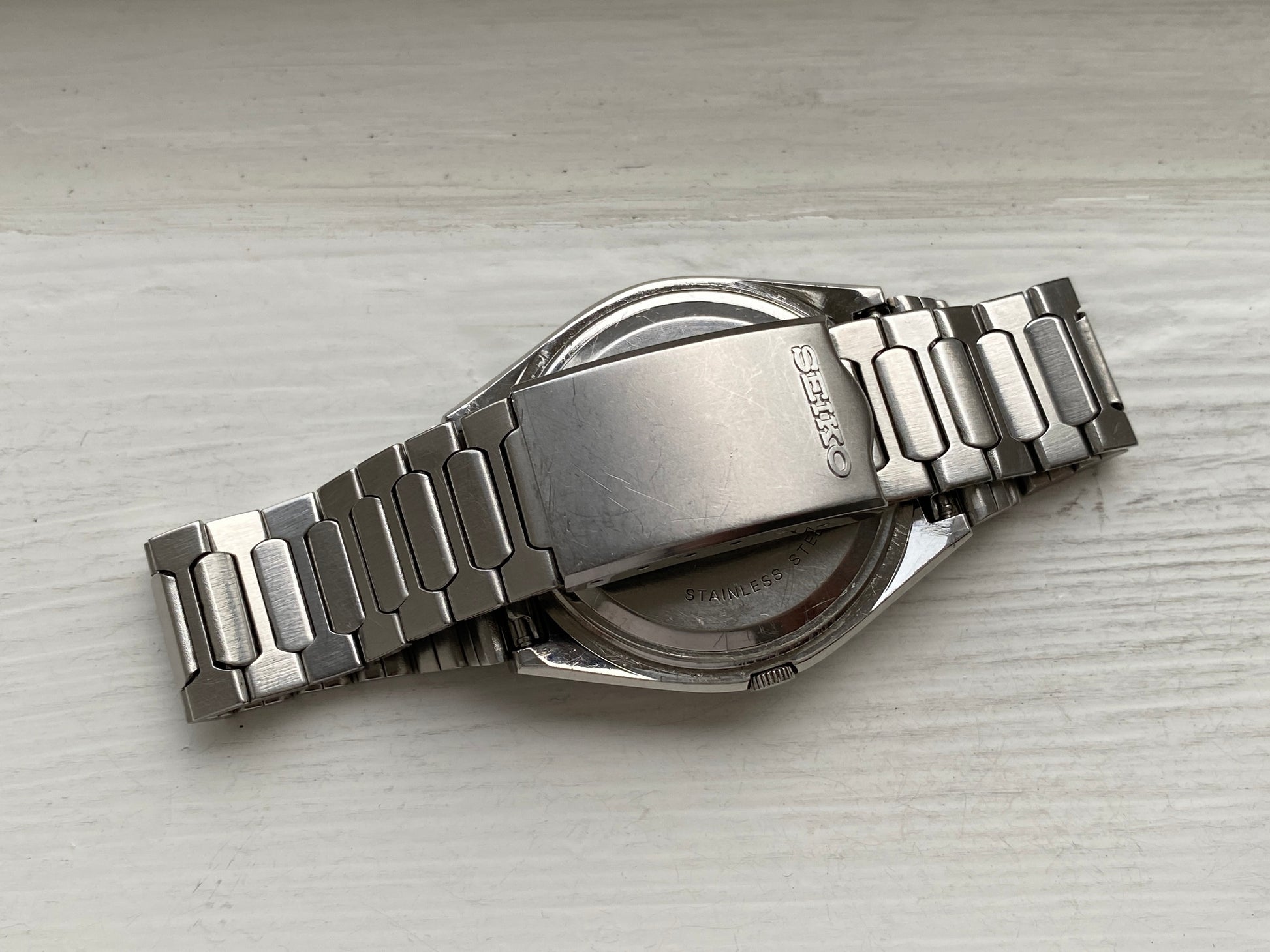 The case and bracelet remain in very good condition, showing only minor signs of wear. The faceted crystal has a few tiny scratches on the left side, as well as the bezel. An extension piece is installed on the bracelet, which can be removed easily if not needed. This is a rare and vibrant piece that captures the adventurous spirit of Seiko’s 1970s lineup.