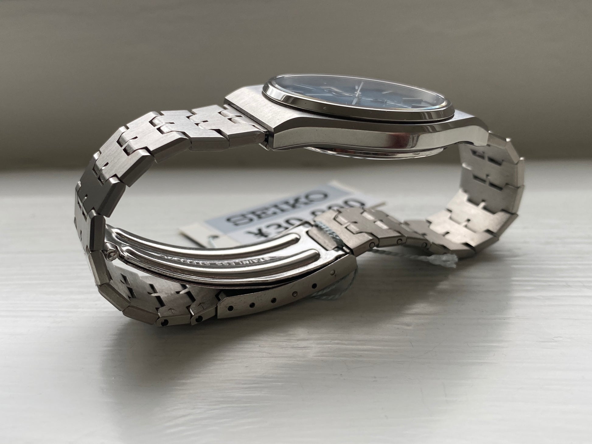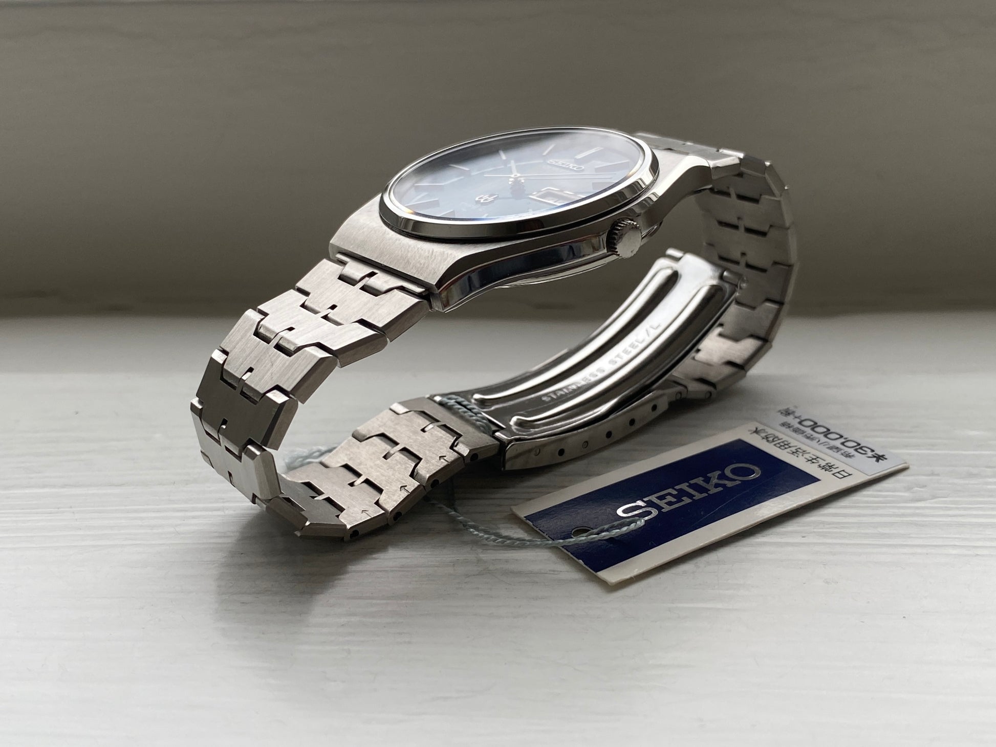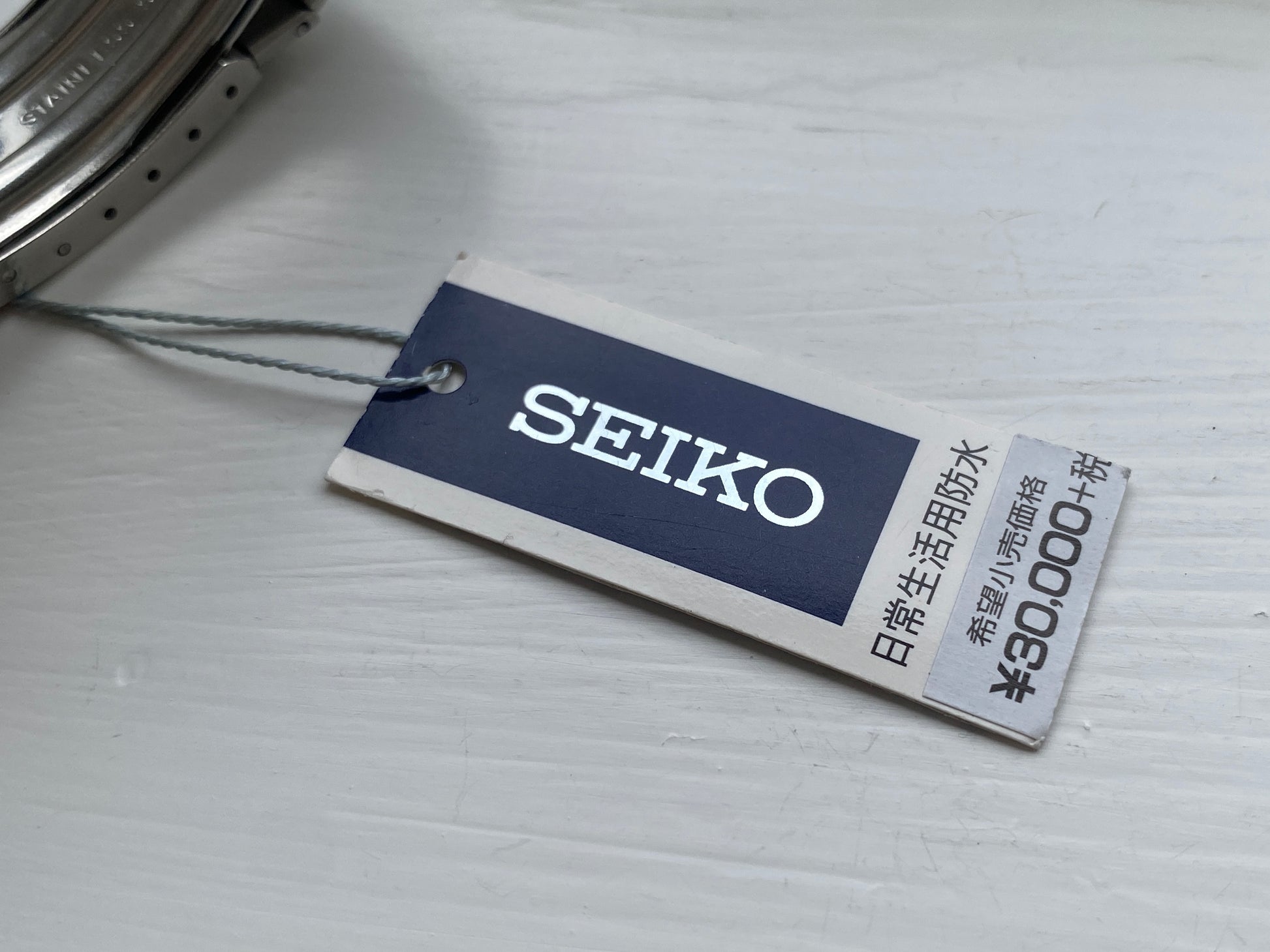Here is a Seiko Quartz Type II from 1978, featuring a striking blue dial with a subtle pinstripe pattern. Produced during the golden era of quartz technology, this watch is in mint, new old stock condition and still retains its original price tag. The case, crystal, and bracelet are completely scratch-free. The original bracelet, solid and weighty in feel, still carries the factory sticker with resizing instructions, a detail seldom seen after more than four decades.