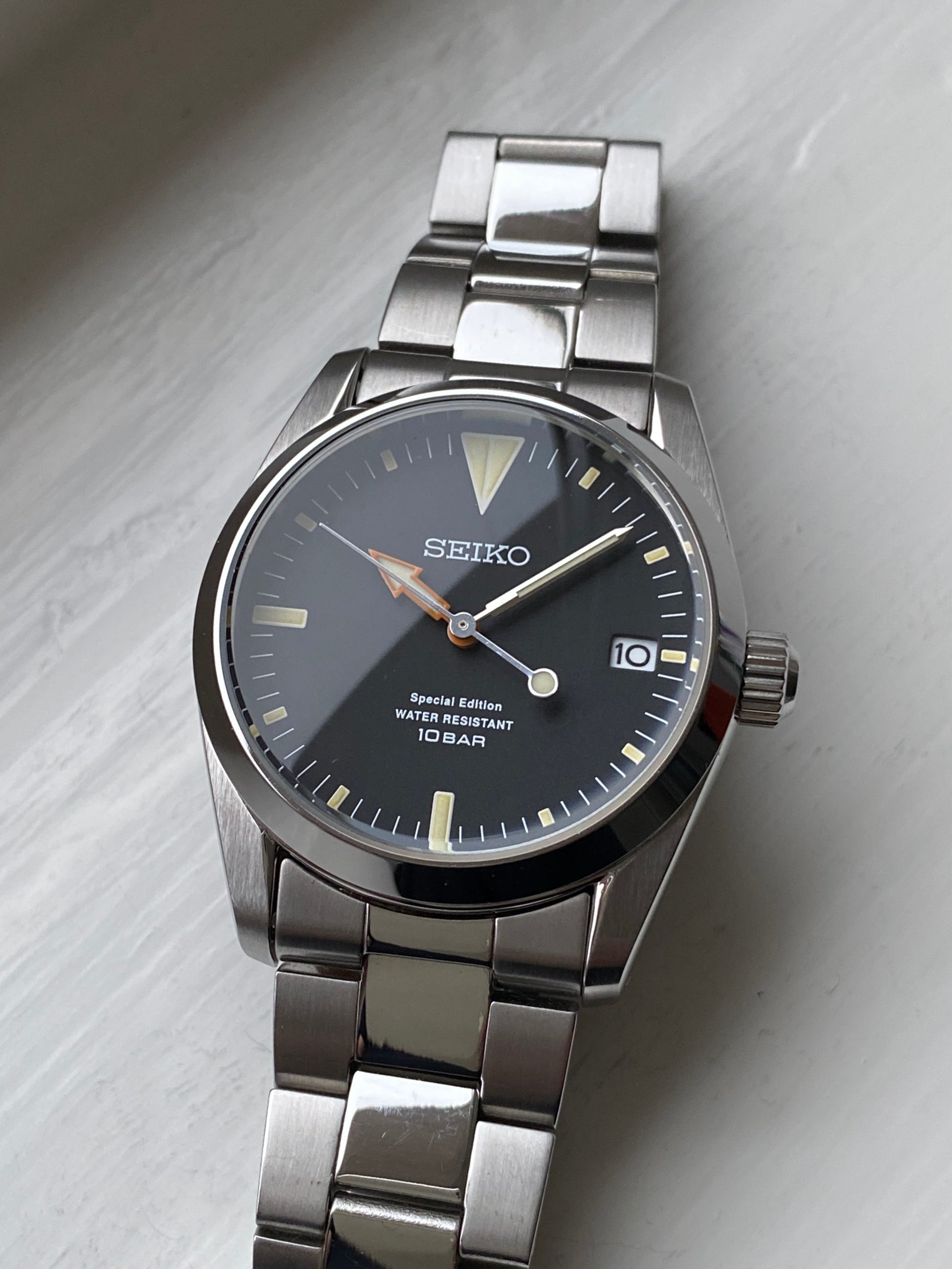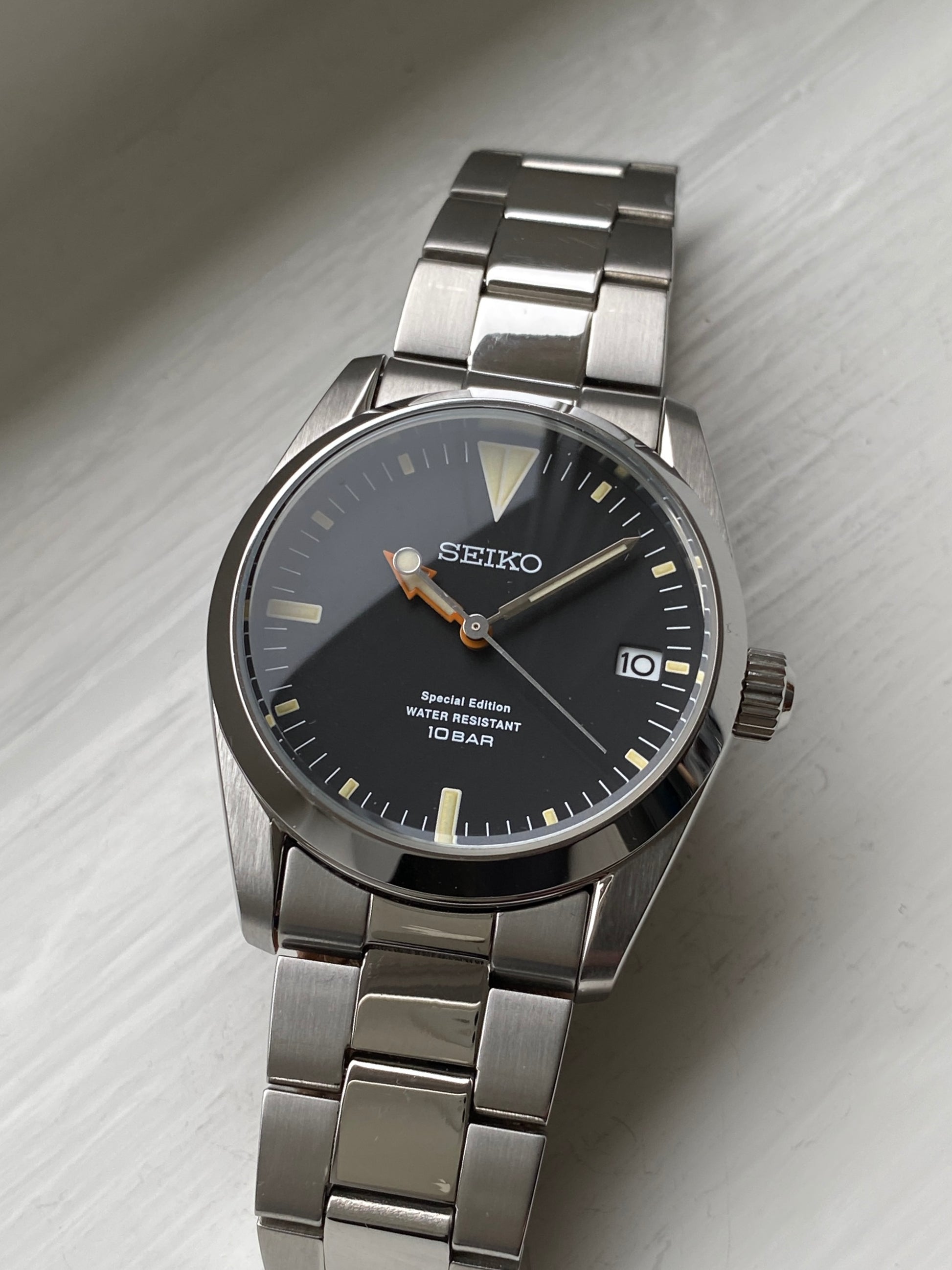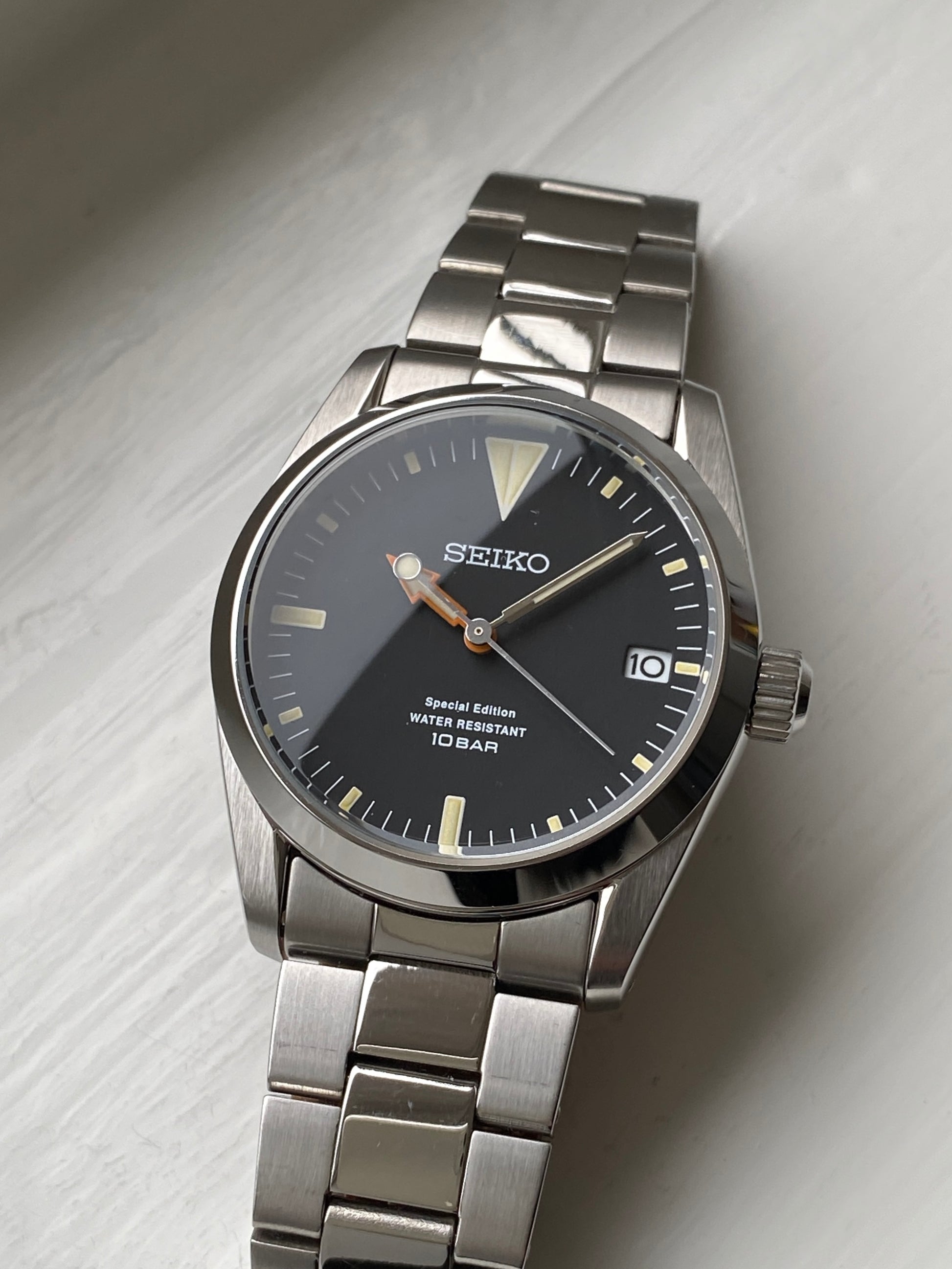 For enthusiasts seeking a subtle nod to iconic designs like the Rolex Explorer 1, this limited edition of just 300 pieces is a great affordable alternative. This example is number 132/300. The watch is in excellent condition, with very minor signs of use on the case and bracelet. It comes with a Seiko box, though not the original limited-edition packaging.